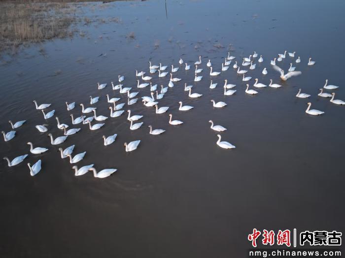 中新网内蒙古新闻11月12日电 (记者 张林虎)又是一年候鸟迁徙季。近日,凉城县岱海自然保护区如约迎来了远道而来的“白羽贵客”——天鹅。它们时而悠然游弋,时而引吭高歌,时而振翅高飞,为初冬的岱海增添了一道灵动而诗意的风景。