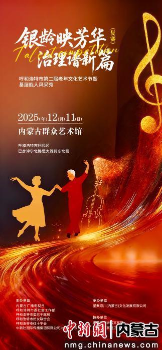 中新网内蒙古新闻12月5日电(白小森)继11月12日“银龄映芳华,治理谱新篇”——呼和浩特市第二届老年文化艺术节暨基层能人风采秀初赛成功举办后,复赛将于12月11日在内蒙古群众艺术馆举行。