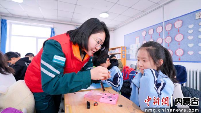 中新网内蒙古新闻3月10日电 (田波 袁丽君)近日,国网松山区供电公司团支部的青年志愿者们走进大兴隆庄小学,开展“‘电’亮乡村书桌”电力公益课堂活动,为孩子们送上一份特殊的“开学礼”。