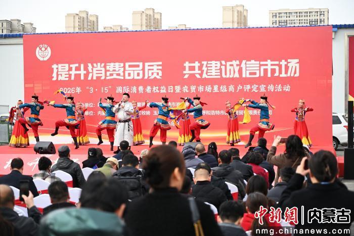 中新网内蒙古新闻3月13日电 (记者 刘文华)3月13日,由呼和浩特市市场监督管理局、呼和浩特市消费者协会主办,内蒙古自治区直属乌兰牧骑、玉泉区市场局、美通农贸市场协办的2026年“3·15”国际消费者权益日暨农贸市场星级商户评定宣传活动,在美通农贸市场正式启动。活动现场,消费者达万余人次,“蒙字标”“地理标识”等展销商户50余家,各行业齐聚一堂,共话消费维权,共筑诚信市场。