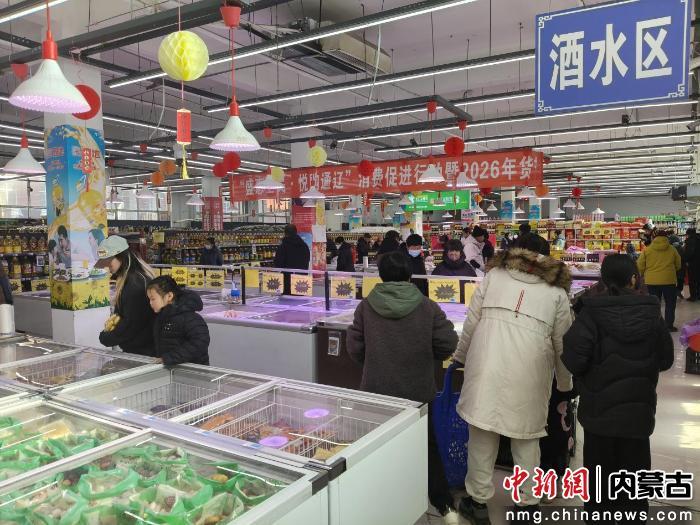 中新网内蒙古新闻2月10日电 (刘文华 李明月)新春临近,年味正浓,通辽市库伦旗年货市场迎来了采购高峰期。各大商超备货充足、人气鼎盛,街头巷尾热热闹闹、人头攒动,市民们都忙着置办年货,把新年的喜庆和美好期盼全部装回家。