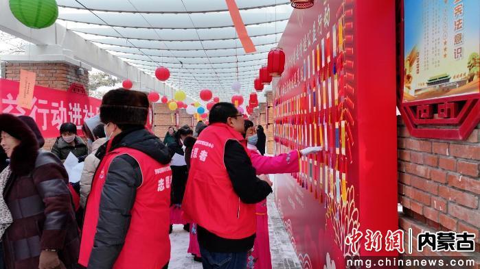 广场两侧,主题灯谜长廊吸引群众驻足参与,内容涵盖传统文化、乡土知识、精神文明等内容;非遗匠心市集上,传承人现场展示技艺、群众动手体验,让非遗可感可触。免费品尝区里,热气腾腾的元宵、香甜可口的冰糖葫芦,让大家在共享美味中感受团圆暖意;主题打卡墙前,市民游客拍照留念,传递新春祝福。