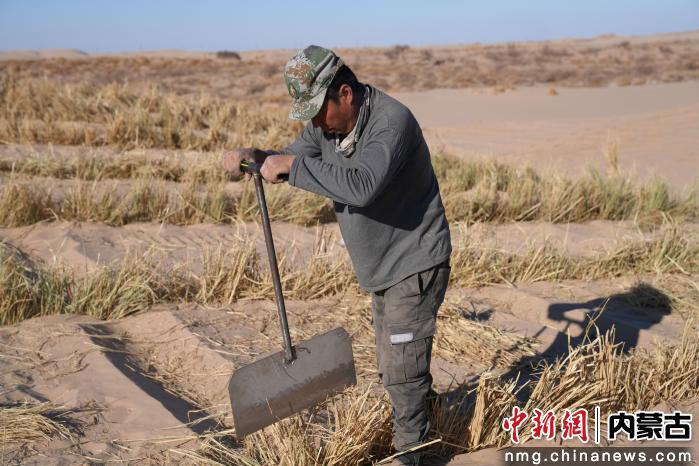 这片3600多亩的沙地是格日僧苏木治沙的“硬骨头”。沙地治理区工程负责人青山介绍,自3月18日开工以来,每天有70余名工人投入作业,消耗稻草约60吨,预计4月中旬完工。日均发放劳务报酬超过2万元。