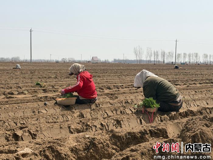 中新网内蒙古新闻4月28日电 (刘文华 唐宇薇)时下,正是大葱秧苗移栽的黄金时节。大沁他拉镇红星村两千余亩标准化大葱种植基地里,农户们抢抓农时、分工协作,翻土、栽苗、浇水,一派热火朝天的繁忙景象。据悉,此次大葱移栽工作预计于5月中旬全面收官。